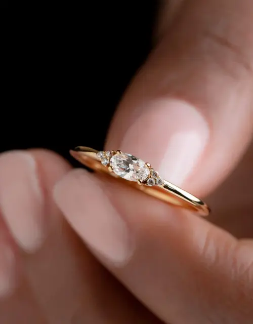 Minimal Oval Cut ring – Teal Blue stone or Clear CZ Stone