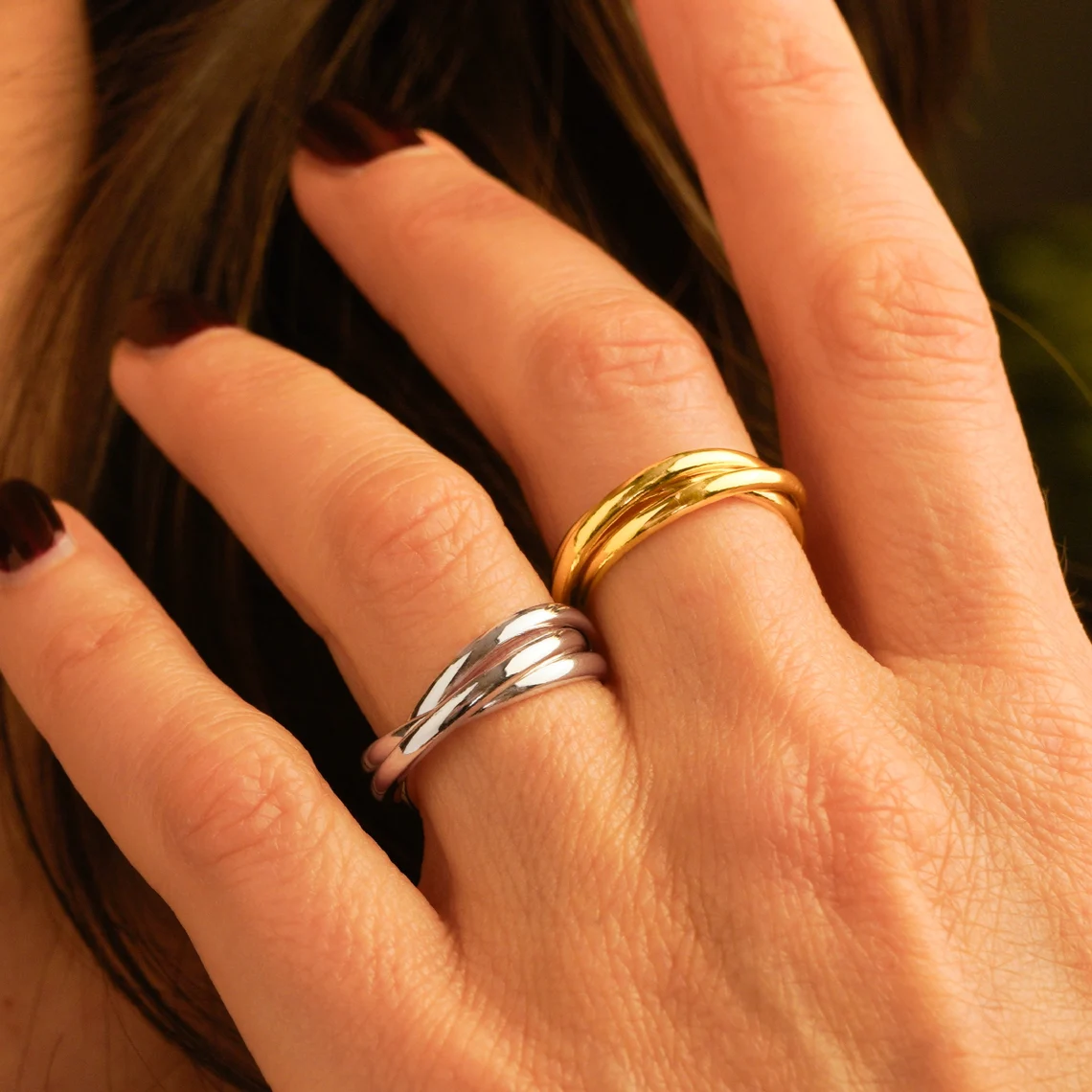 Tranquility and style Anxiety Ring Spinner and Interlocking Fidget Ring. It’s a personalized gold filled piece that is popular right now, perfect as a gift for her or any loved one needing additional comfort in their day to day life. You can also choose mixed metal styles on this spinner ring to make it uniquely yours!
