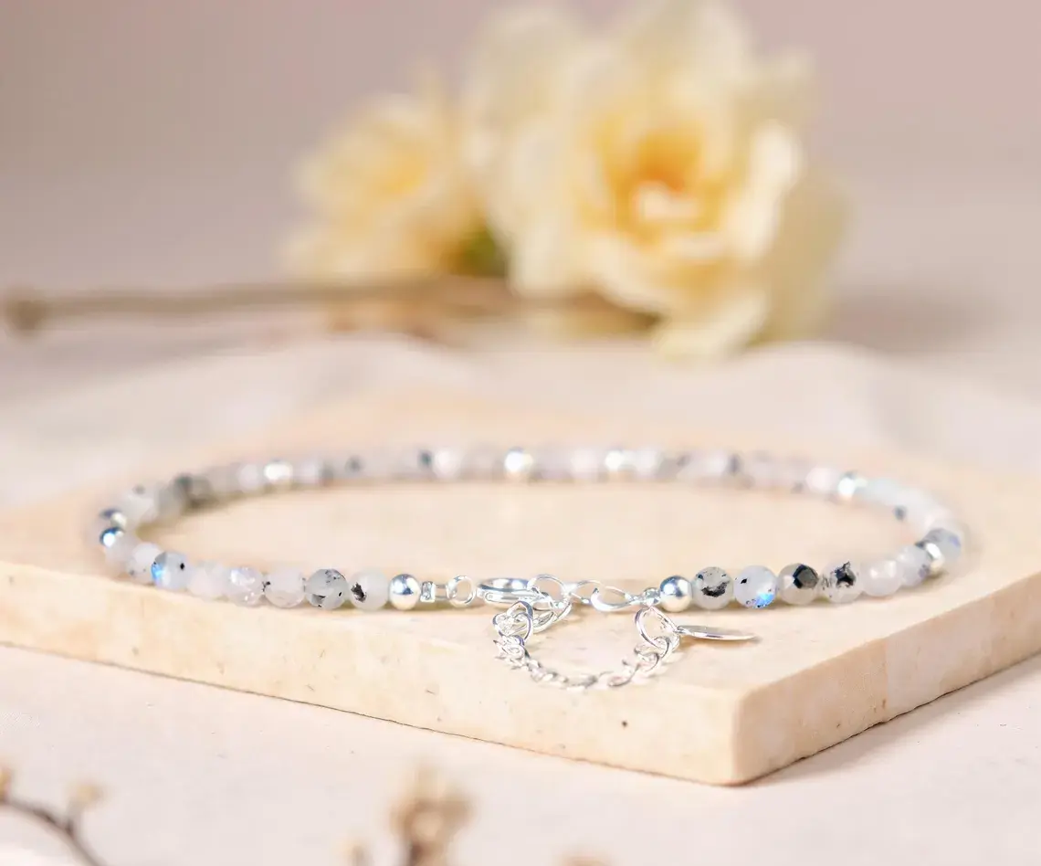 Moonstone Bracelet, Rainbow Moonstone Beaded Dainty Bracelet