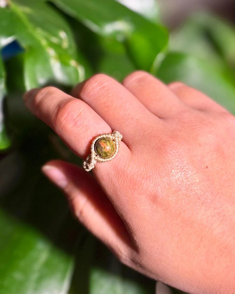 Unakite Ring, Healing Crystal Macrame Ring, boho hippie jewelry, crystal jewelry, macrame jewelry, natural unakite ring, 6.5 (6 1/2) US size